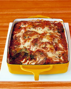 The eggplant slices are baked, not fried, in this eggplant Parmesan. This hearty vegetarian main dish can be made a month ahead and frozen so it's ready for your next family meal.