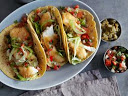 For serving: Spread some avocado cream on a Homemade Tortilla. Top with 3 pieces of fish and some shredded lettuce. Finish with pico de gallo and Spicy Green Chili Sauce.