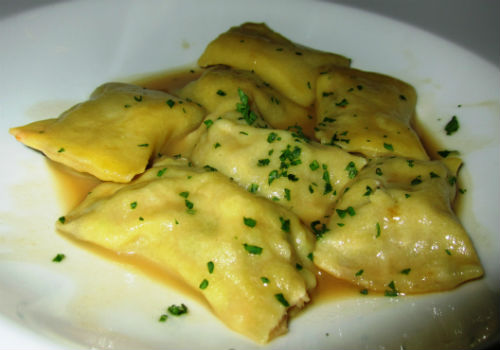 Crab and Shrimp Agnolotti with Brown Butter, Pecans & Sage