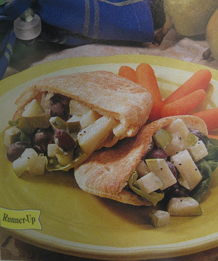 In a bowl, combine pears, celery ,grapes and walnuts. In another bowl, combine yogurt, mayonnaise and poppy seeds; mix well. Add to pear mixture; toss to coat. Refrigerate for 1 hour or overnight. To serve, line pita halves with lettuce and add 2 tablespoons pear mixture.