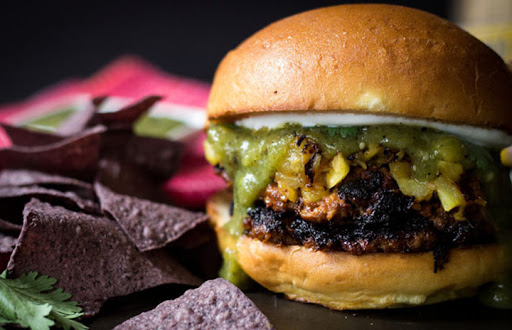Al Pastor Burger with Roasted Tomatillo Salsa