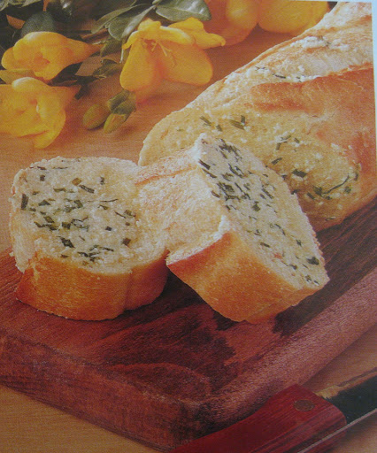 In a bowl, combine the butter, Parmesan cheese, chives and garlic. Spread on