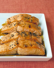 3.Bake until fish is opaque but still bright pink inside, basting every few minutes with glaze from baking dish, 15 to 20 minutes. Serve with lemon wedges