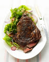 3. Assemble: Add lettuce, radishes, and onion to bowl with dressing; toss to coat. Place salad on dinner plate, and top with steak.