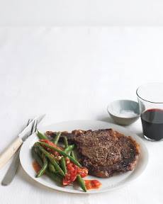 Beef: Rib Eye Steaks with Sauteed Green Beans and Tomatoes