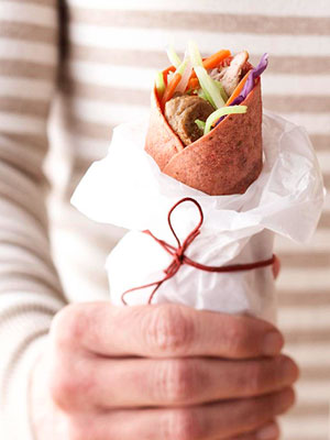 Use spinach or tomato tortillas to make a colorful presentation for these tasty 30-minute Asian wraps. If you desire, substitute chicken for the pork.