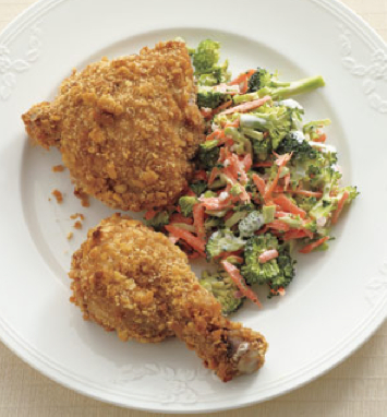 source: Real Simple, under the name "Oven-Fried Chicken with Crunchy Broccoli Slaw"