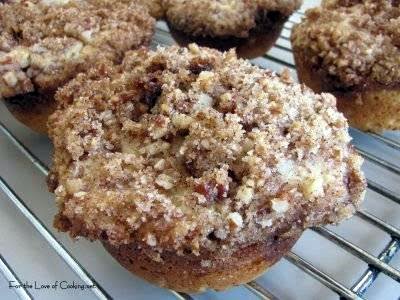 Add pecans and the last 3 tablespoons of sugar to food processor with remaining cinnamon mixture and pulse until nuts are coarsely ground. Transfer to bowl and set aside for streusel topping.