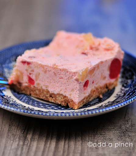For easy cutting, place knife into a large glass of hot water. Then, cut squares of frozen pie for serving.