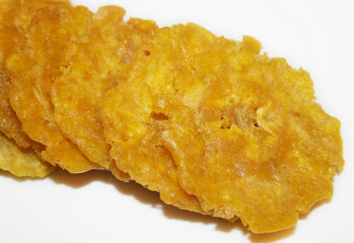 Fried plantain chips are savory, crisp, and starchy. These are usually served with salsa verde. Patacones don't reheat very well, so eat them while their hot!