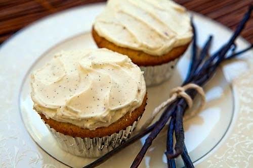Beat the butter and slowly add in the powdered sugar. Scrape the seeds out of the vanilla bean (or vanilla extract if using) and beat in.