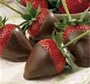Melt the chocolate and cream together in a bowl set over simmering water until just melted. Stir and remove from the heat. Dip each strawberry in the chocolate and set aside on waxed or parchment paper to dry.