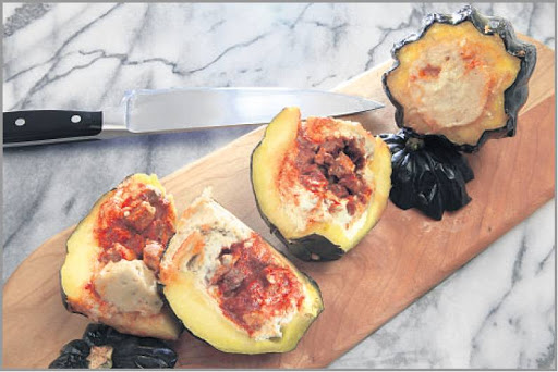 Acorn squash meets tamale in a scrumptious guajillo chile sauce. Step out of the comfort zone - you'll be happy you did!