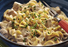 Stir noodles into mixture. Increase heat setting to High. Cover; cook 20 to 30 minutes or until noodles are tender. Stir in sour cream. Garnish individual servings with parsley.