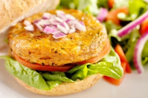 - 1 frozen meatless hamburger-style patty (100 calories or less)