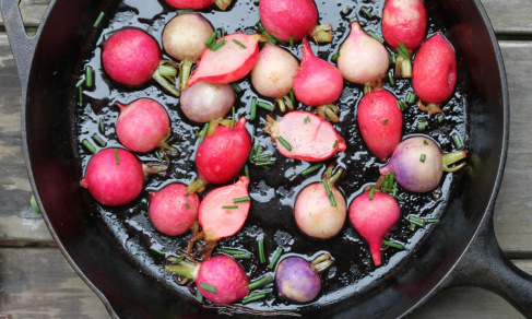 - 2 large bunches radishes, roots trimmed and cut into halves