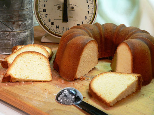 True Pound Cake, is a recipe that dates back to the 1700′s. It gets the name of pound cake, because of how it’s made. Originally, the recipe called for one pound each of Flour, Sugar, Butter, and Eggs.