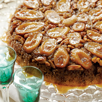 3. Cut bananas diagonally into 1/4-inch-thick slices; arrange in concentric circles over brown sugar mixture. Sprinkle pecans over bananas.