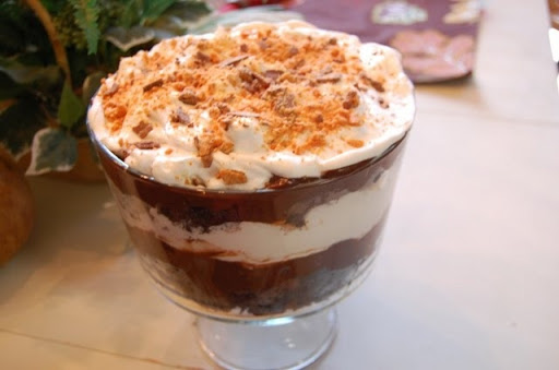 In a large glass serving bowl layer 1/3 of the whipped topping mixture.