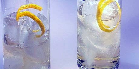 Put the ice cubes in a highball glass. Pour in the port and tonic water. Drop in the zest