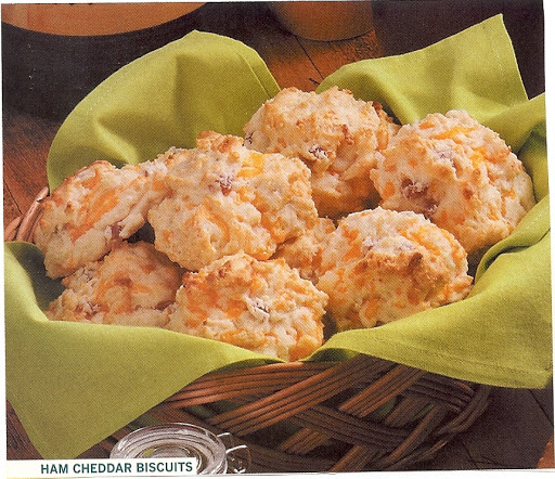 In a bowl, combine the biscuit mix and milk just until moistened. Stir in the cheese and ham. Drop by rounded tablespoonfuls onto greased baking sheets. Bake at 450 degrees for 8-10 minutes or until golden brown. Serve warm.