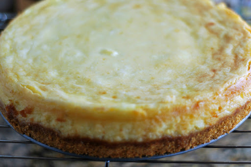 Turn off the oven and prop open the door. Let the cheesecake stand in the oven for 15 minutes. Run a knife around the edge of the pan and remove the side. Let stand on a wire rack until completely cool. Chill, covered for 8 long hours. Garnish with strawberries.