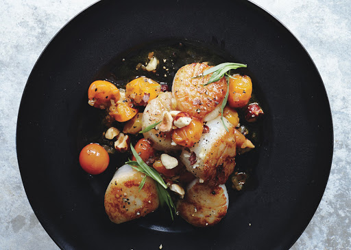 Scallops with Hazelnuts and Warm Sun Gold Tomatoes