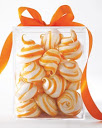 Using a small paintbrush, paint 3 vertical stripes of food coloring inside a pastry bag fitted with a 1/2-inch round tip (Ateco #805). Fill bag with meringue, and pipe 1 3/4-inch circular shapes (they don't need to be perfect rounds) 2 inches apart on 2 parchment-lined baking sheets. As you finish piping each shape, apply less pressure to pastry bag, and swirl the tip off in a circular motion.