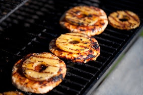 Put on a plate; grab the 4 pineapple slices and head to the grill.