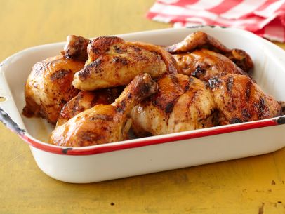 Brush the chicken pieces with glaze, then flip the chicken, glaze side down, and cook for 2 minutes. Brush second side of the chicken with glaze and flip again. Continue cooking for 3 more minutes. Remove the chicken from grill to a platter and serve with reserved glaze.