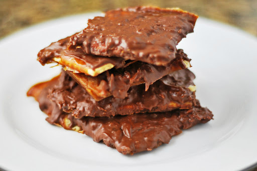 Preheat oven to 400 degrees and line a cookie sheet or jelly roll pan with saltine crackers in a single layer. In a small pot combine sugar and butter and bring to a boil. Once at a boil, continue boiling for 3 minutes. Mixture should be a deep caramel color. Immediately pour over saltines and spread to cover crackers completely. Bake at 400 degrees 5 minutes. It will get all bubbly. Remove from oven and sprinkle chocolate chips over the top and let sit a couple of minutes to melt. Spread chocolate. Cool completely and break into pieces.