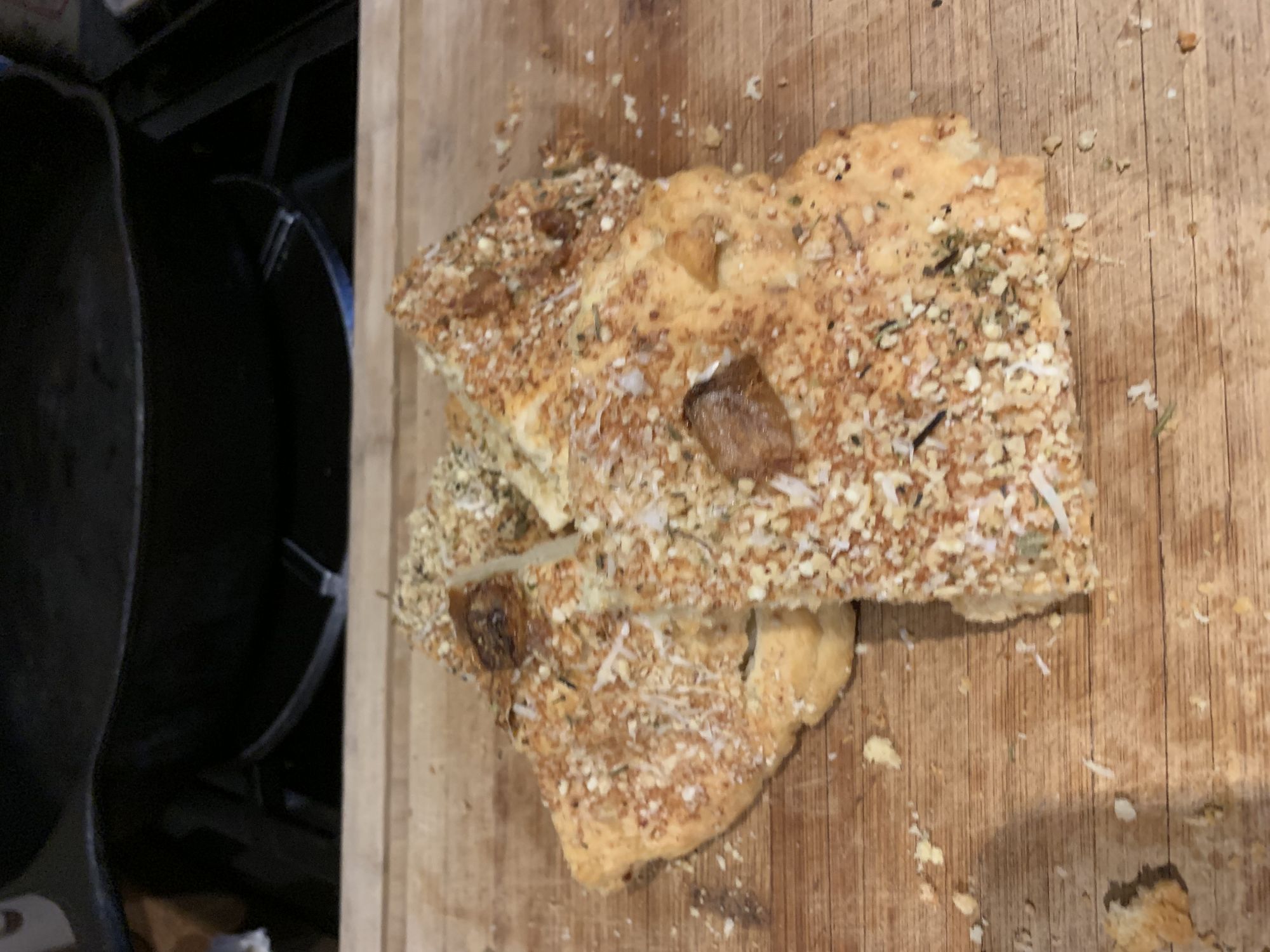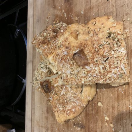 This recipe is a take off on the Carmelized Onion Focaccia which is really good, but for a friend who doesn't like onions, I converted to Roasted Garlic.