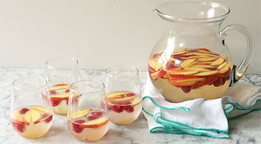 It’s almost 5 p.m. You’re expecting company. And you’re faced with a decision that could make or break your evening: Wine or cocktails? Well, dear friend, with our recipe for white sangria, you get the best of both drinks in one pitcher. To start, we freeze fresh peaches and raspberries, then combine the fruit with white wine, peach juice and orange-flavored liqueur. Instead of becoming diluted by ice cubes, the sangria will just get more flavorful as it chills, thanks to that frozen fruit. Bonus: This concoction is totally white-jeans-friendly.