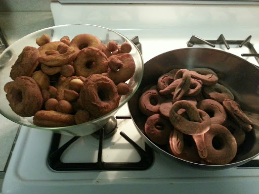 On a floured surface, roll to 1/2" thick and cut with doughnut cutter