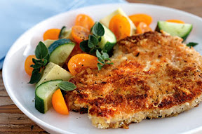 2. Place the egg in a shallow bowl. Dip the pork chops in egg, then in the breadcrumb mixture, pressing to coat.