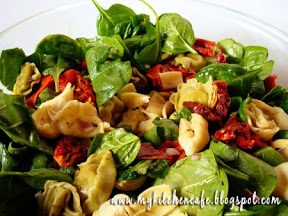 Cook tortellini in boiling water until al dente. Drain and toss (carefully so the tortellini don’t break apart) with a teaspoon of olive oil to keep from sticking. Let cool in colander. In a large bowl, toss all the salad ingredients together after the pasta has cooled.