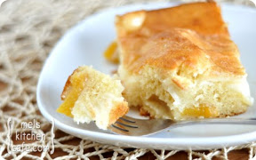 Bake for 45-60 minutes until the edges are puffed and golden and the cream cheese layer has bubbled slightly on top. This is a difficult cake to test for doneness because of the gooey cream cheese layer. If the middle is still jiggly, bake until it no longer jiggles and the cake batter layer is puffed and no longer runny. Serve warm or at room temperature.