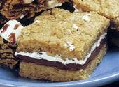 3. Arrange chocolate bars over dough, breaking as needed to fit. Spread with marshmallow creme. Scatter bits of remaining dough over marshmallow; carefully press to form a layer.