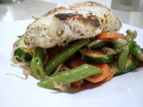 Arrange vegetables on a plate, and place fish on top. Serve hot