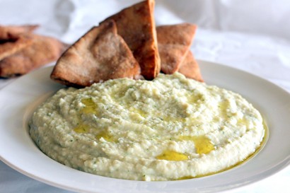 Garlic White Bean Basil Hummus and Homemade Toasted Pita Chips