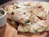 Heat a large saute pan over high heat. Add enough oil to coat the bottom of the pan and lower the heat to medium. Cook until golden brown on both sides, about 3 minutes per side. Repeat with the other quesadilla.