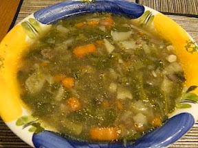 2 Add broth, Tomato paste, cabbage, green beans, basil, oregano and Salt & Pepper to taste.