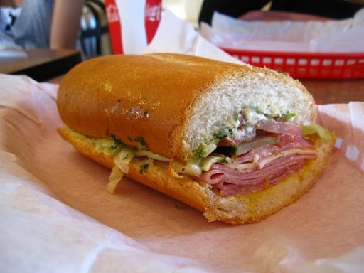 Ham and Mortadella Sandwich with Provolone and Pickled Hot Pepper Relish