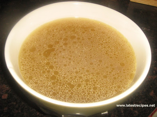 Remove the chicken from the oven and add to the pot of vegetables along with the bay leaves and thyme. Fill the pot with water. Place the pot on a burner on high heat. Bring to a boil and reduce to a simmer. Eventually a gray scum will form on the top of the water. Skim the scum and the fat off the top of the water. Simmer for 2 1/2 to 3 hours. Refill the water as it evaporates.