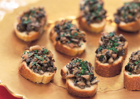 Crostini with Mushrooms, Prosciutto, and Blue Cheese