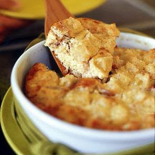 Preheat an oven to 350°F. Lightly butter a shallow 1 1/2-quart round baking dish, 9 1/2 inches in diameter.