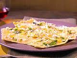To make the Corn Tortelli: Begin by rolling out the pasta dough. Sprinkle a baking sheet with cornmeal and set aside. Cut a piece of the dough off the ball and shape into a rectangle about the size of a deck of cards. Cover the remaining dough with plastic wrap until you are ready to use it. Roll the rectangle of dough through the widest setting of the pasta machine a few times until it is smooth. Then roll it through the remaining settings to the thinnest setting. Sprinkle the sheet lightly with cornmeal, gently fold, place on the cornmeal-lined baking sheet and cover with plastic wrap. Continue rolling out the rest of the pasta.