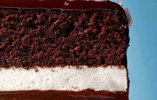 Spoon filling over chilled ganache on cake layer in pan; smooth top. Gently place second cake layer on top. Cover tightly with plastic wrap and chill until cream layer is set, at least 6 hours or overnight.