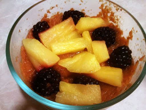 Top with frozen pineapple and blackberries. Refrigerate overnight.