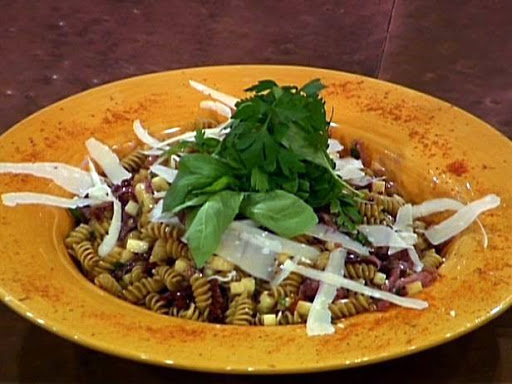 Combine 2 tablespoons salt, the olive oil, and 4 quarts water in a large pot over high heat and bring to a boil. Add the rotini and cook, stirring occasionally to keep the pasta from sticking together, until just al dente, about 9 minutes.